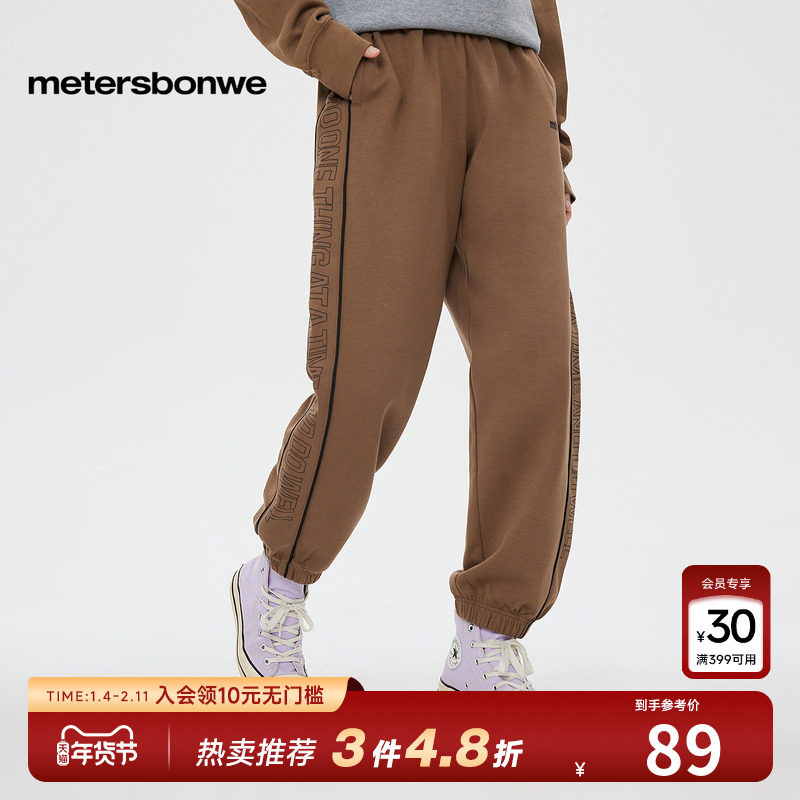 美特斯邦威针织束脚裤男女秋冬潮流时尚拼接侧面印花街头卫裤长裤