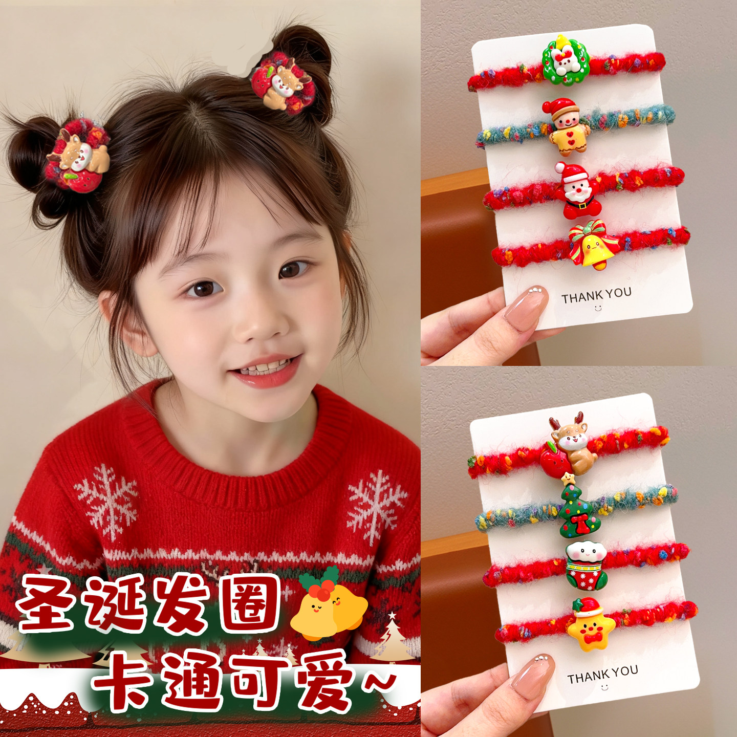 圣诞头饰儿童皮筋女扎头发圈可爱丸子头头绳不勒发小女孩发绳发饰