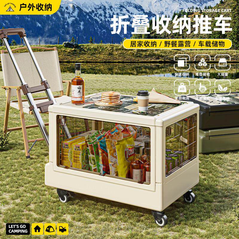 露营小推车户外拉杆箱五开门收纳箱野餐拉杆车周转箱可折叠露营箱