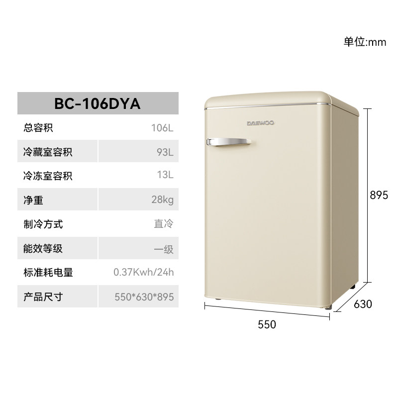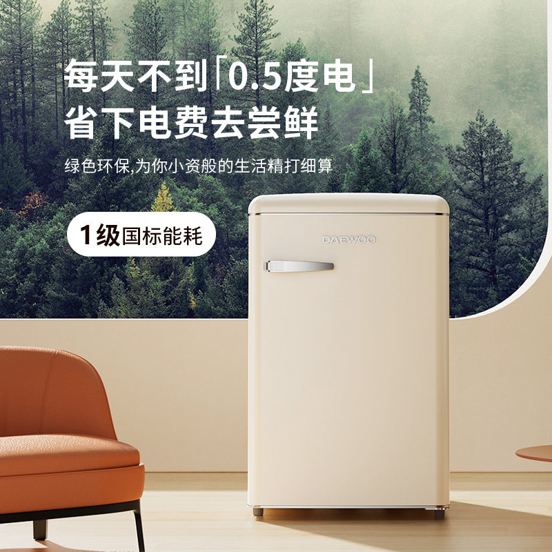 DAEWOO韩国大宇复古冰箱冷冻冷藏高颜值单门小型迷你节能冷柜106L