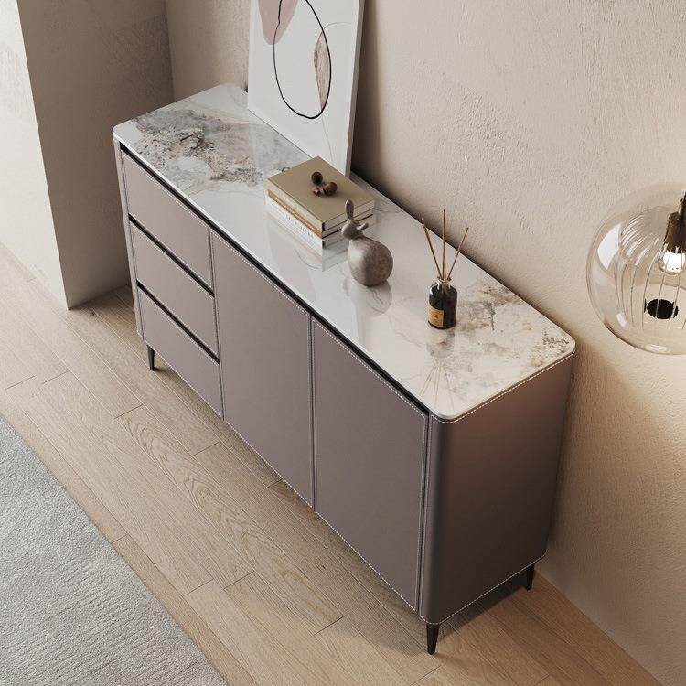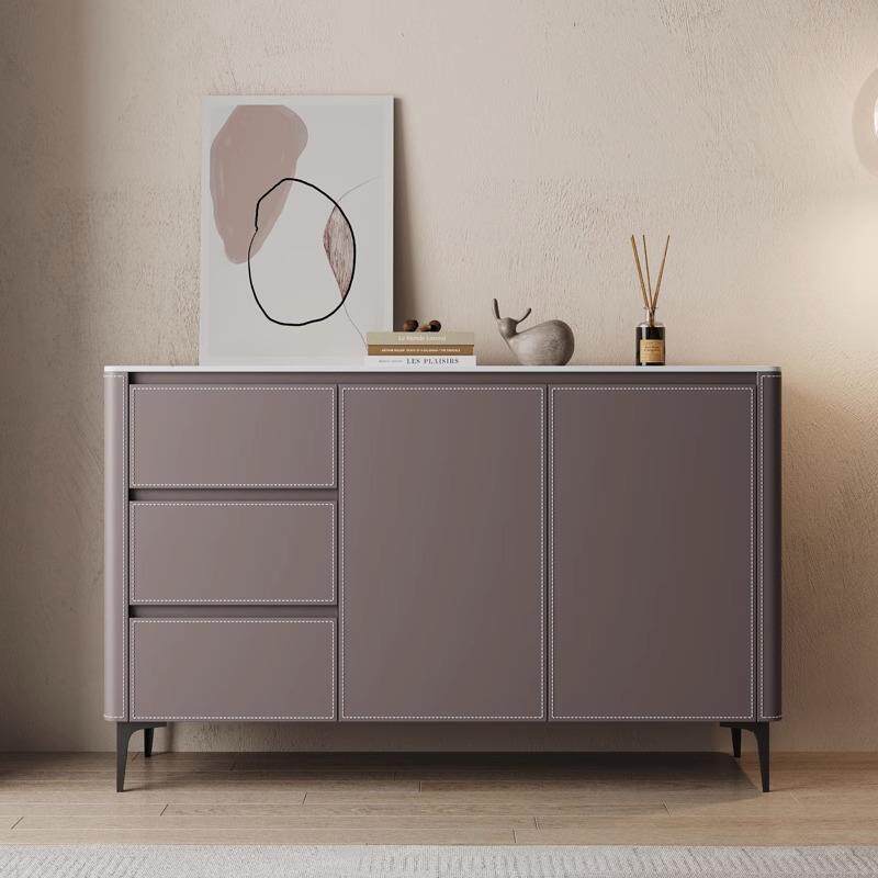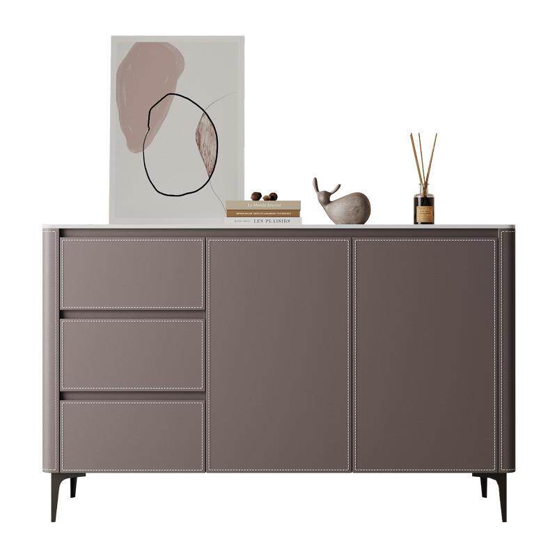 岩板马鞍皮餐边柜轻奢小户型家用靠墙储物柜意式入户玄关柜茶水柜