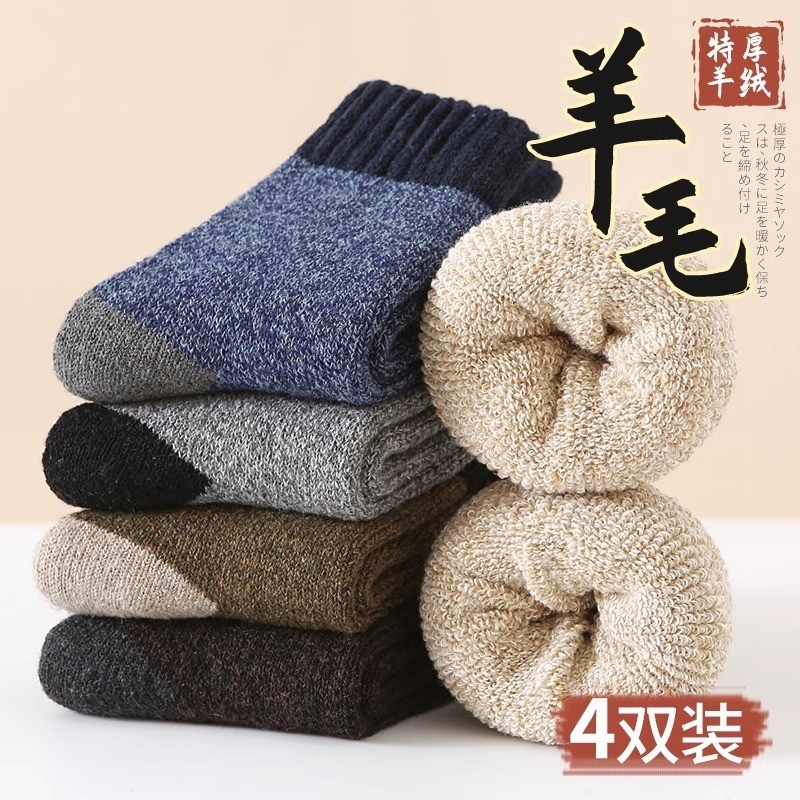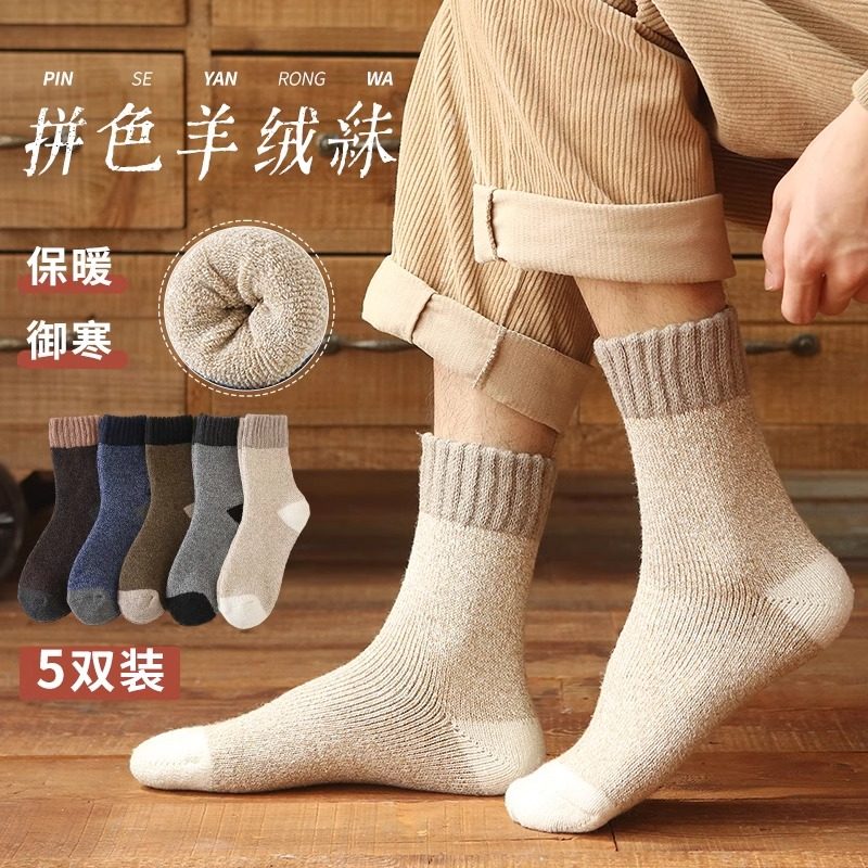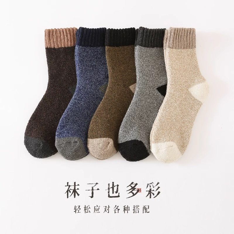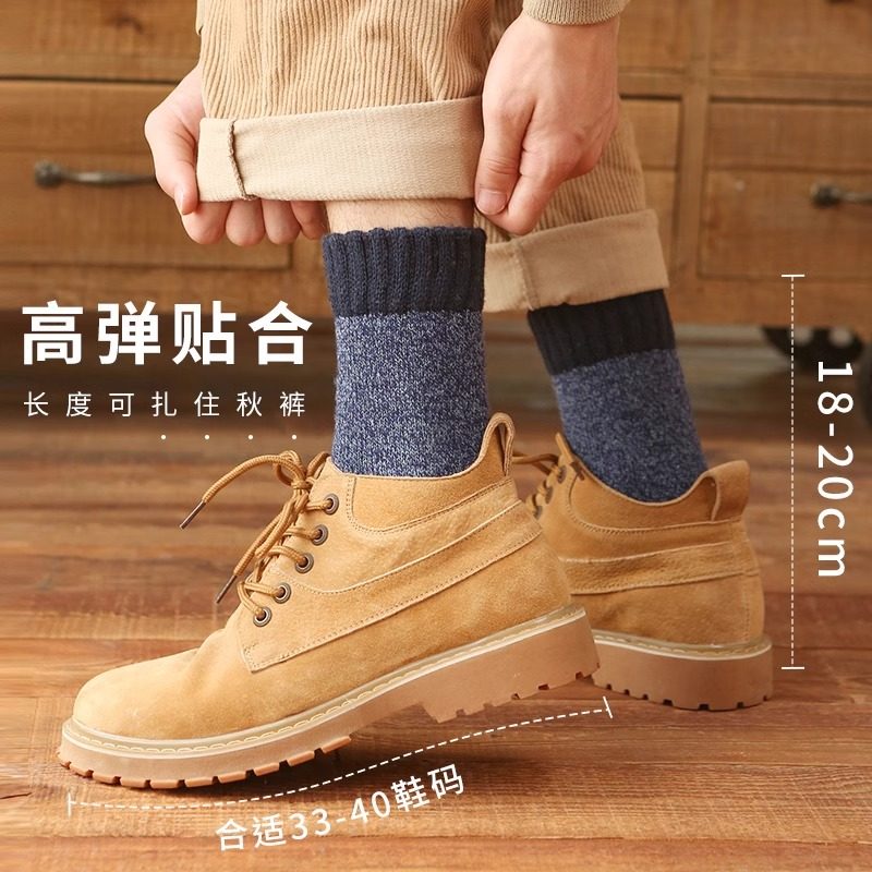 厚袜子男秋冬款仿羊毛加绒保暖中筒袜冬季男士长筒袜羊绒毛圈御寒