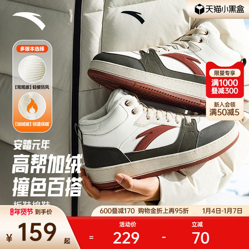 安踏元年丨厚底板鞋男鞋学生小白鞋冬季百搭轻便休闲鞋经典运动鞋
