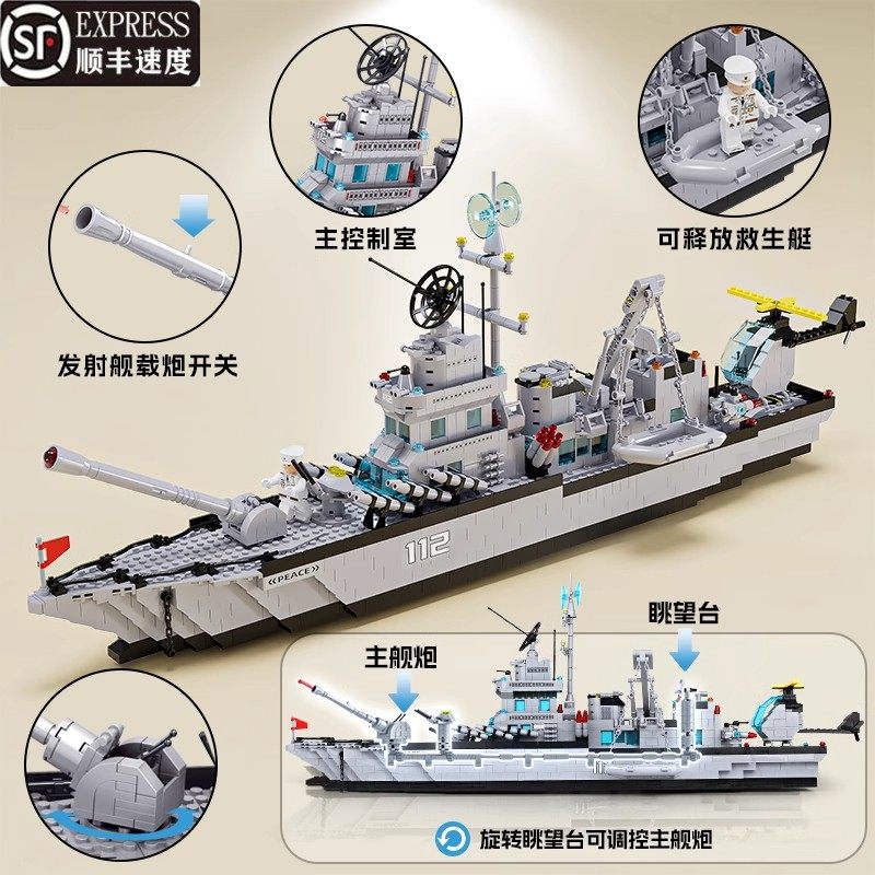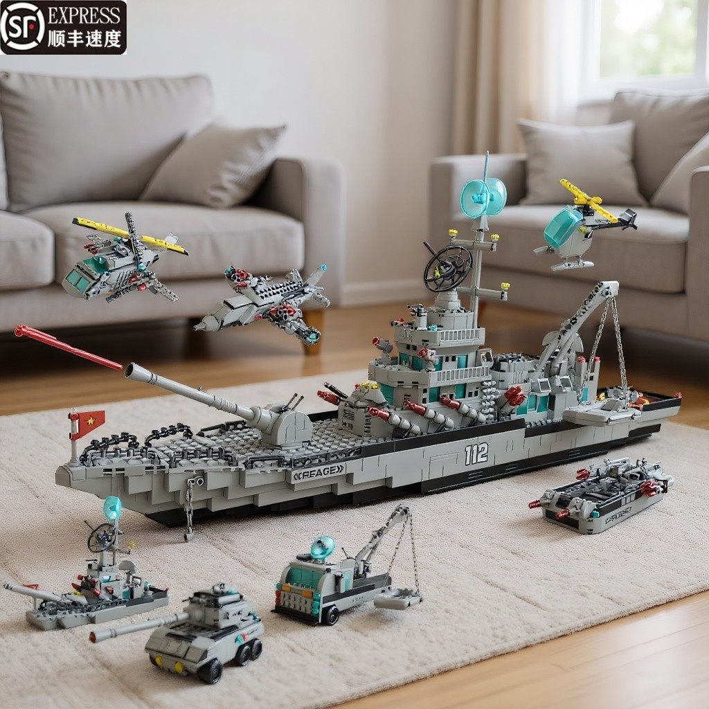 兼容乐高航空母舰积木军事船兵人拼装儿童乐玩具高6-12岁男孩礼物