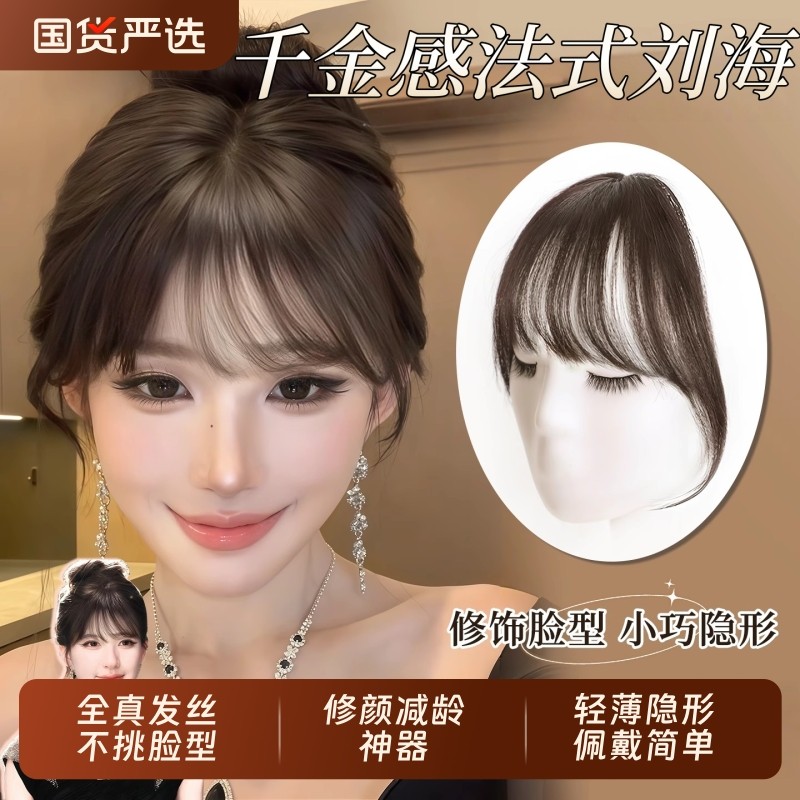 许妍同款法式刘海假发女自然前额增发量蓬松真发无痕齐刘海假发片