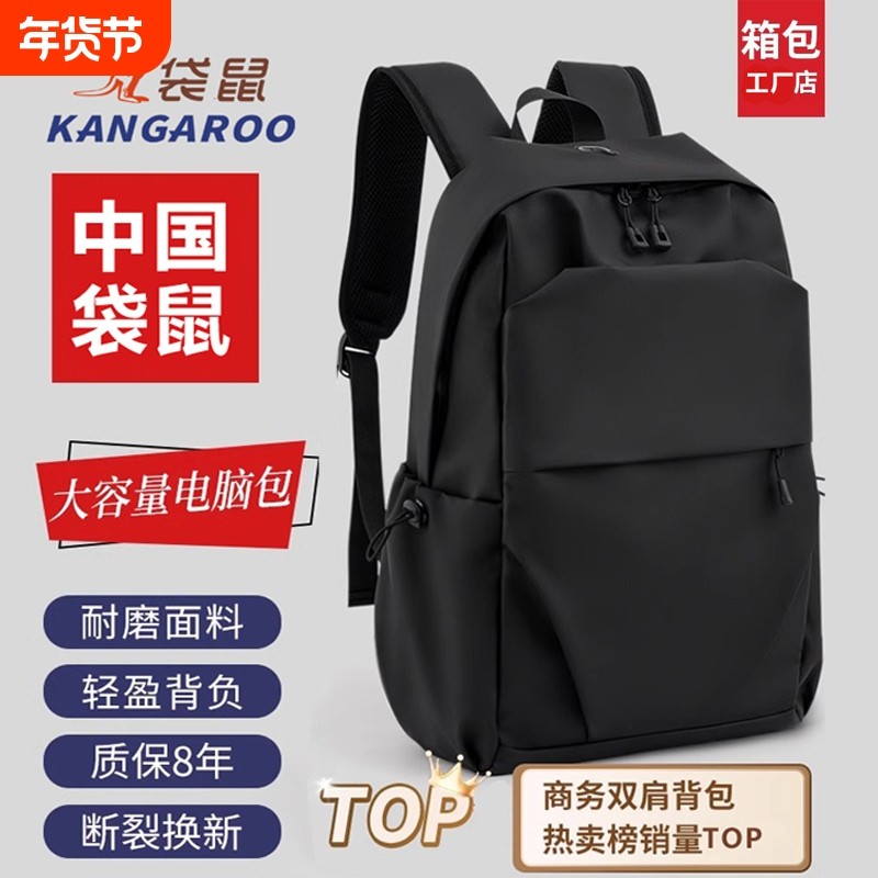 KANGAROO/袋鼠双肩包商务背包男士通勤防水电脑包大容量学生书包