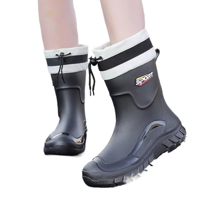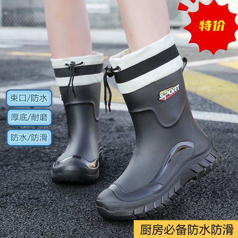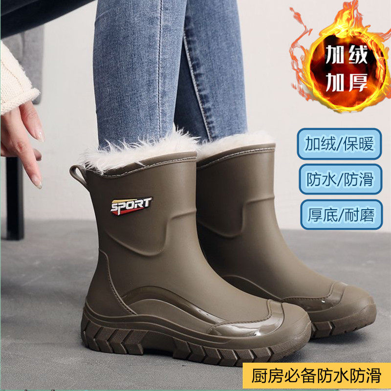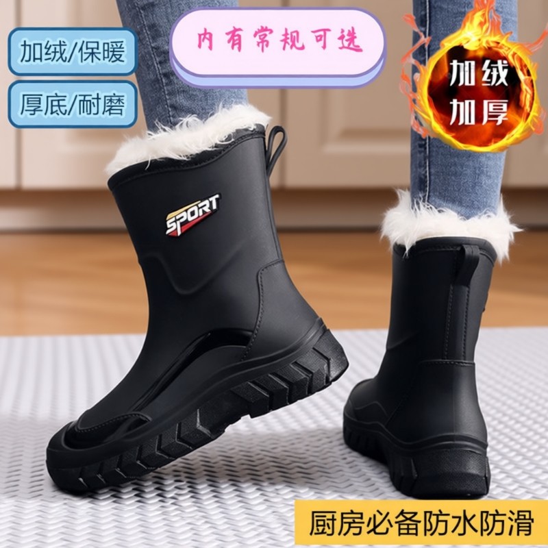 时尚新款加绒加厚雨鞋女款防水防滑防油耐磨厨房胶鞋水鞋中筒冬天