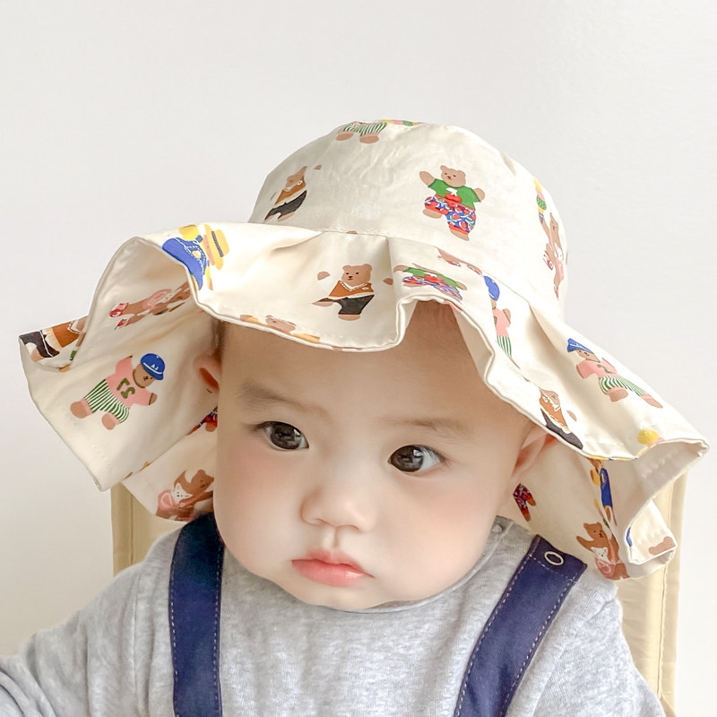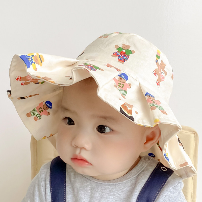 新款夏季儿童渔夫帽防晒大帽檐卡通遮阳帽婴儿男女宝宝薄款太阳帽
