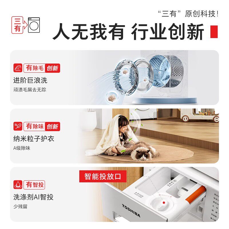 [国补不限区域]东芝玉兔2.0高奢滚筒洗衣机10/12kg全自动洗烘一体