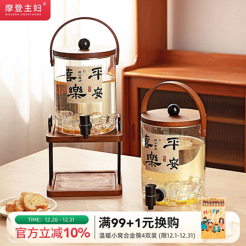 摩登主妇家用带龙头冷水壶玻璃耐高温凉水杯储水壶冷泡茶壶饮料桶