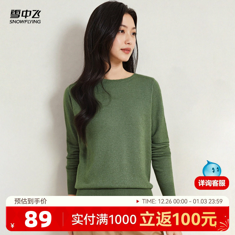 雪中飞2025秋新款纯色圆领女式针织衫正肩长袖T恤套头打底上衣W