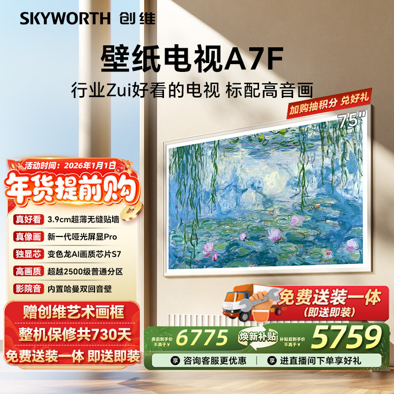 创维壁纸电视A7F 75英寸超薄壁画Mini LED电视机以旧官方换新补贴