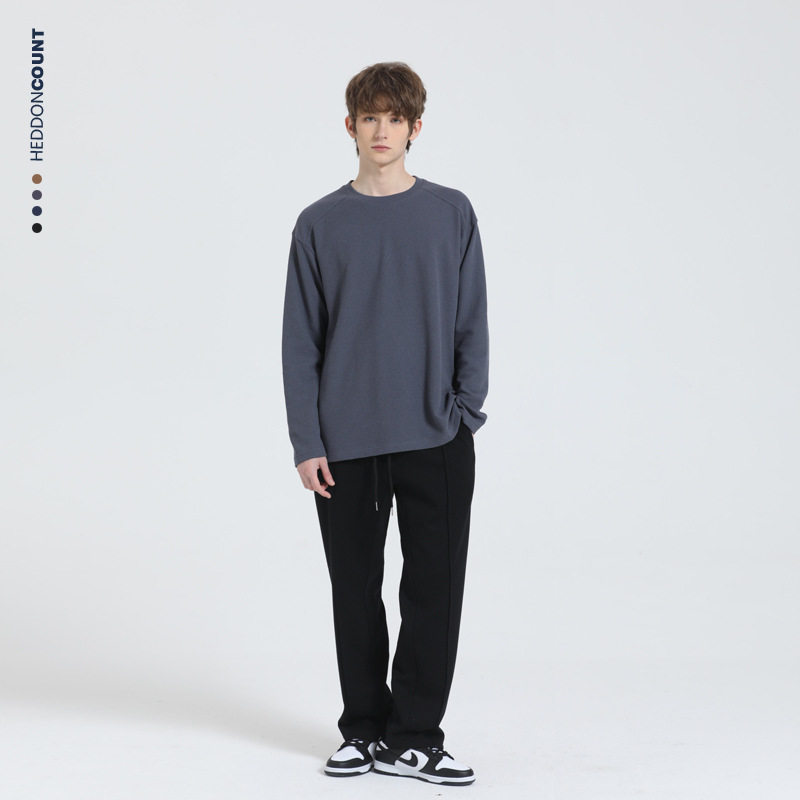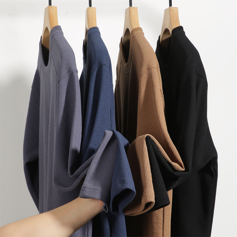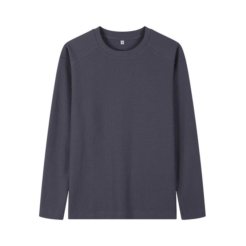 撤柜撤标(M)春季华夫格插肩袖纯色t恤衫日系休闲宽松长袖上