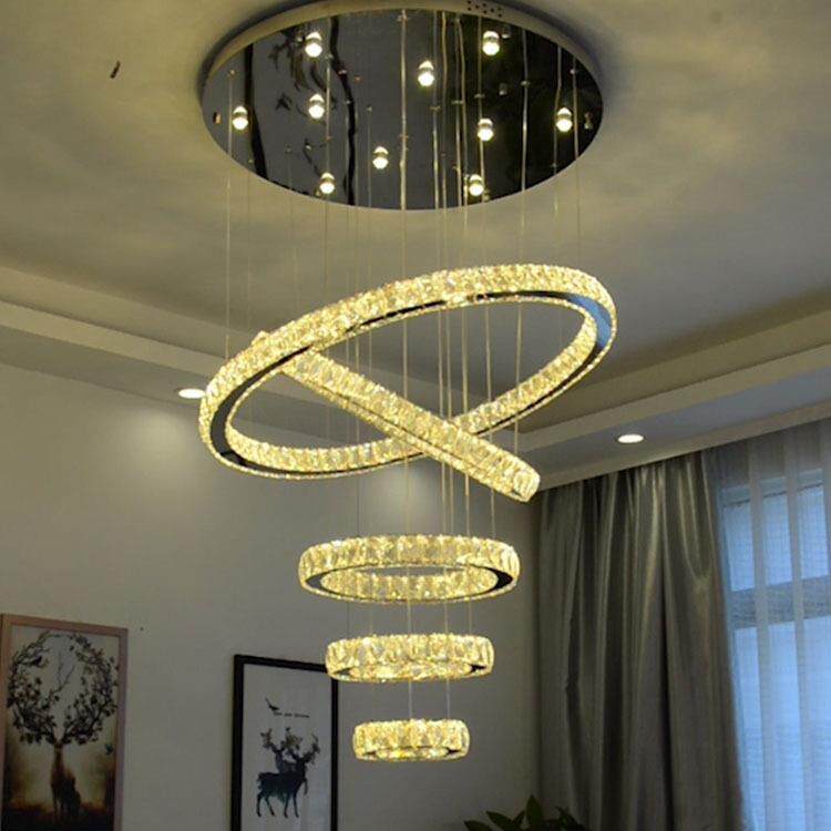 2020 现代简约圆环水晶吊灯 复式楼大吊灯 中空客厅楼梯水晶灯