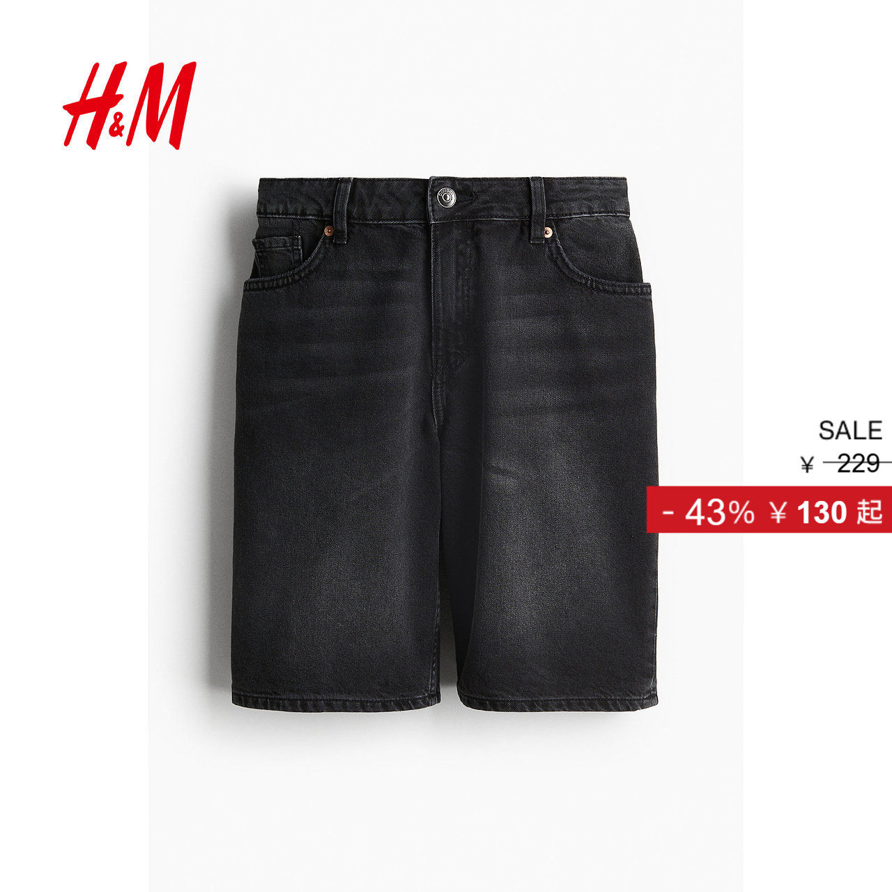 HM女装牛仔裤春季柔软宽松低腰通勤美式风五分牛仔裤短裤1224915