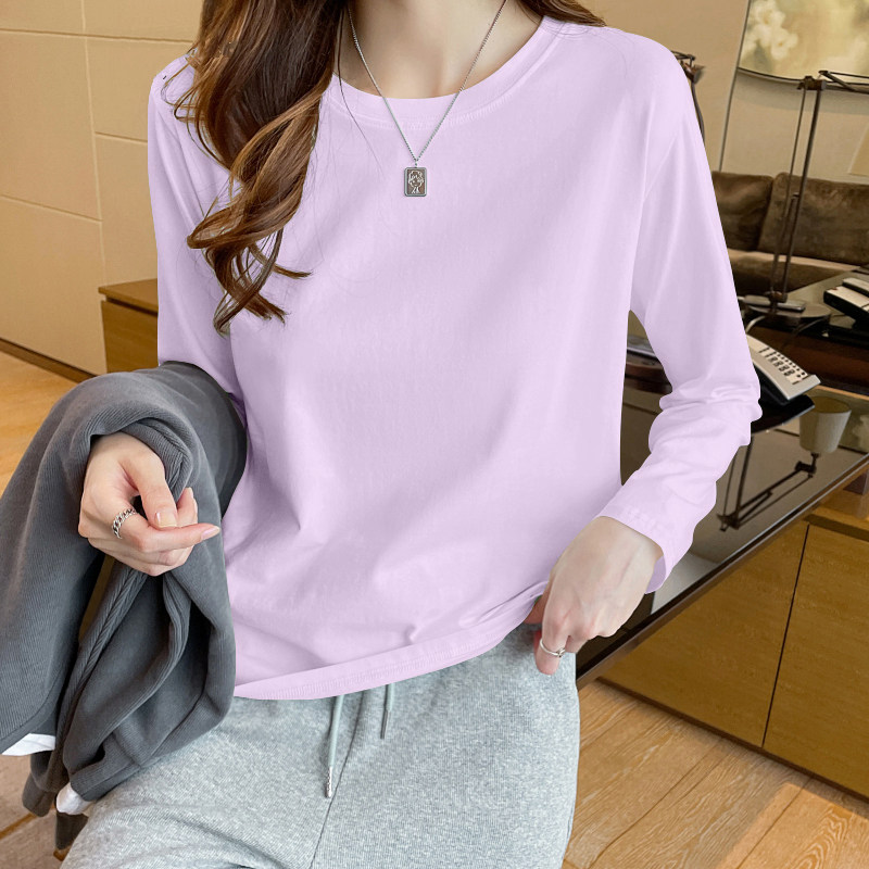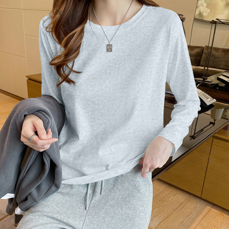 三福长袖上衣女2025新款秋冬季圆领内搭打底衫修身白色t恤女装