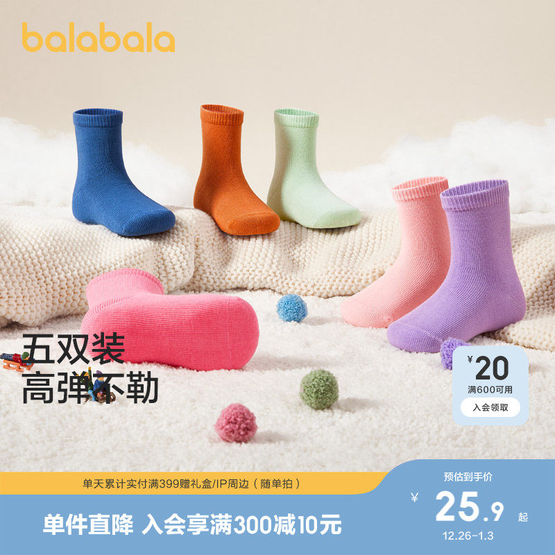巴拉巴拉儿童袜子春秋保暖儿童学生袜透气男童女童小童红色拜年服