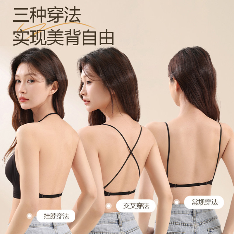 可外漏细肩带美背内衣女小胸聚拢夏季薄款无痕抹胸吊带一体式文胸