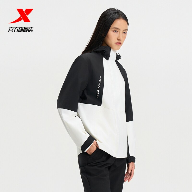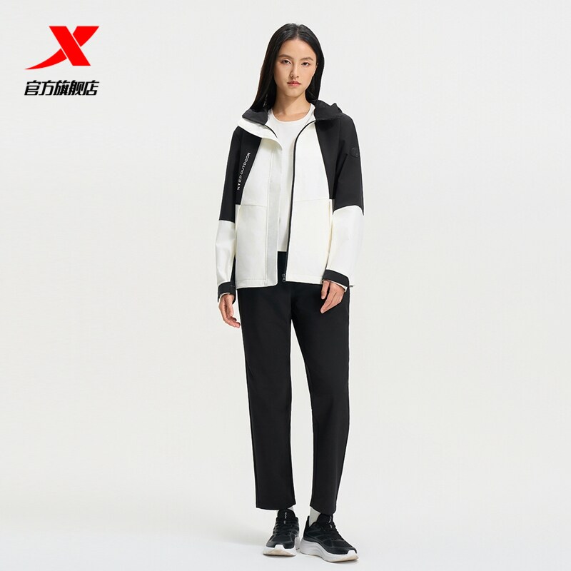 特步连帽外套女2025年秋季新款户外女装保暖冲锋风衣975328160059
