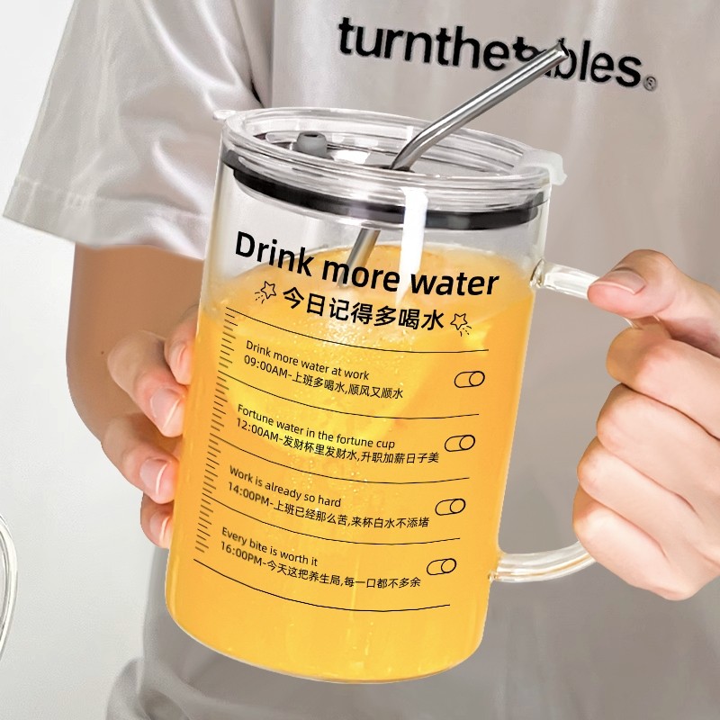 玻璃杯大容量1000ml高硼硅泡茶杯女办公室家用喝水杯子吸管杯新款