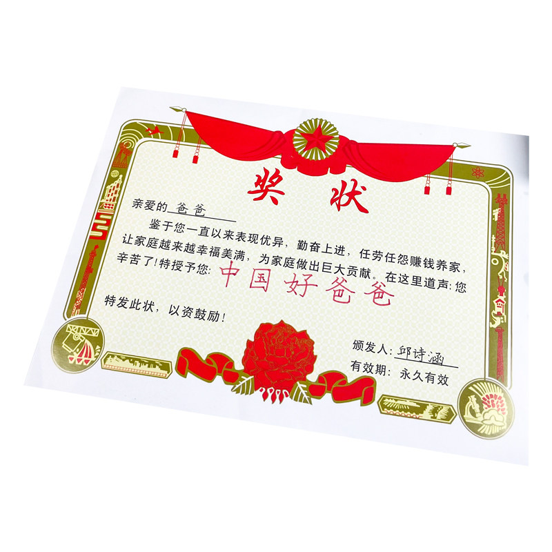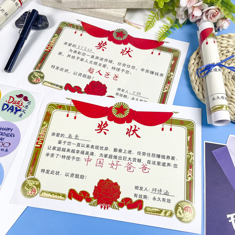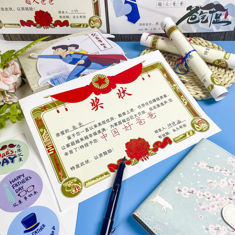 创意父亲节快乐自制奖状小学生送给中国好爸爸颁个奖幼儿园创意超人荣誉证书父爱如山感谢恩信表扬信贺卡礼物