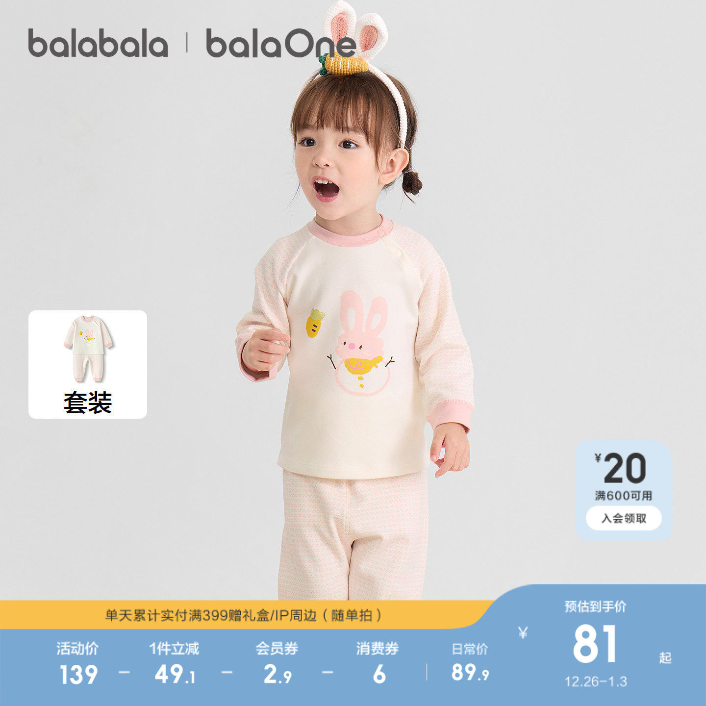 巴拉巴拉童装婴儿内衣套装男女童长袖睡衣2025新款秋冬保暖秋衣萌
