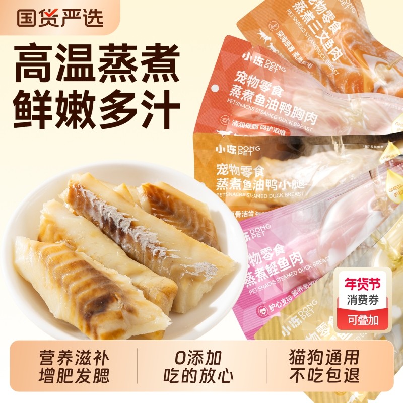 蒸煮鳕鱼猫咪狗狗零食水煮鸭肉三文鱼鲣鱼补水湿粮猫罐头营养增肥