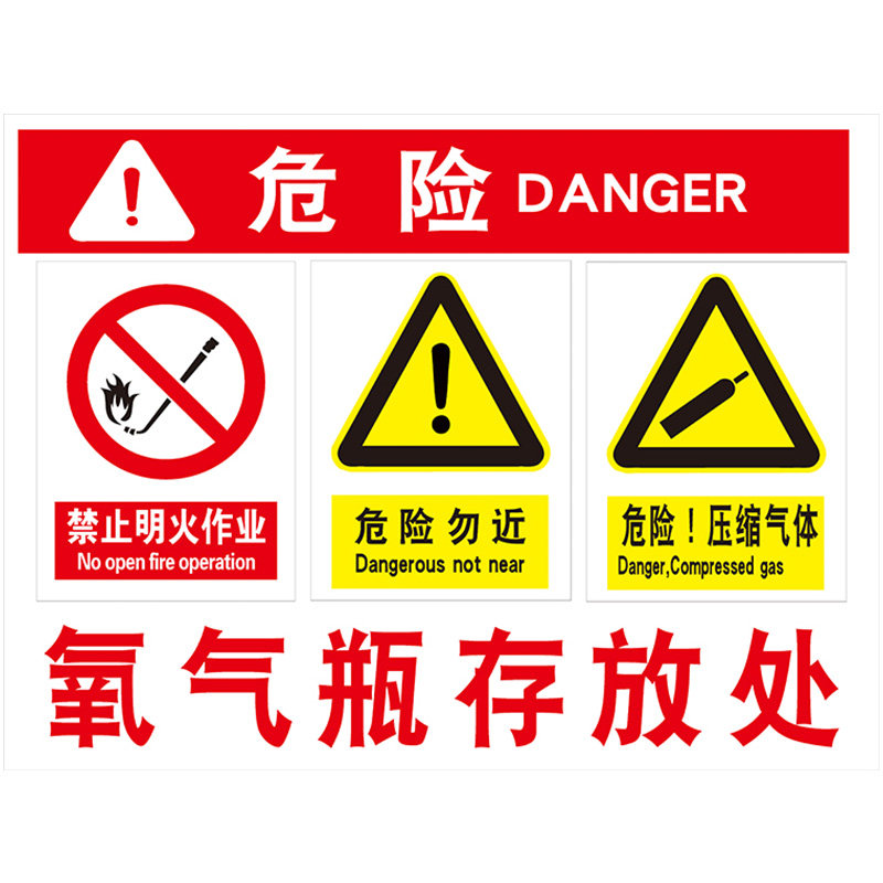 气瓶存放处警示牌提示牌标识牌牌子贴纸氧气液化气存放处严禁烟火禁止吸烟危险请勿靠近提醒提示