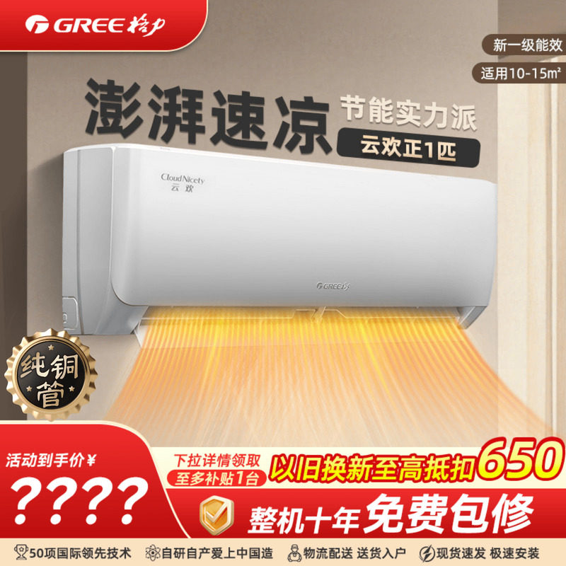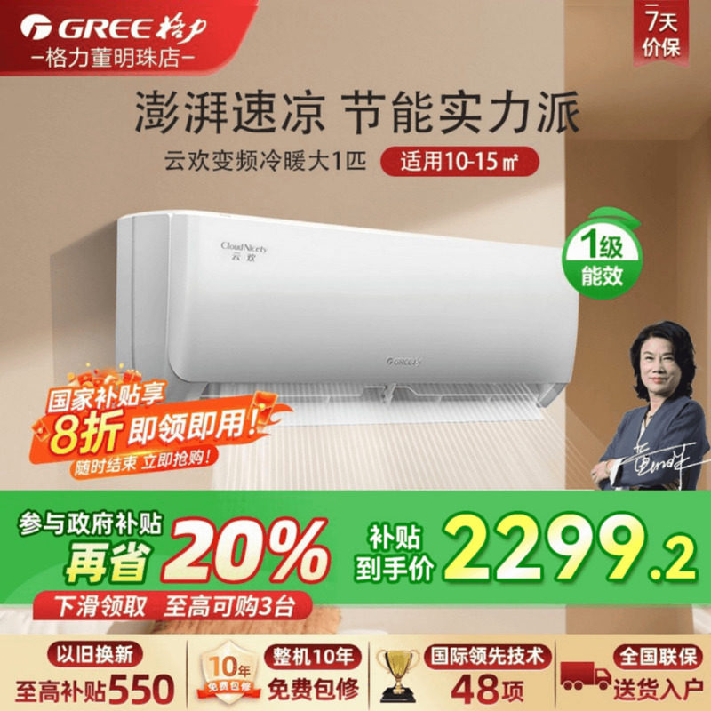 【政府补贴】格力空调1匹1.5匹家用变频挂机一级能效官方旗舰云欢