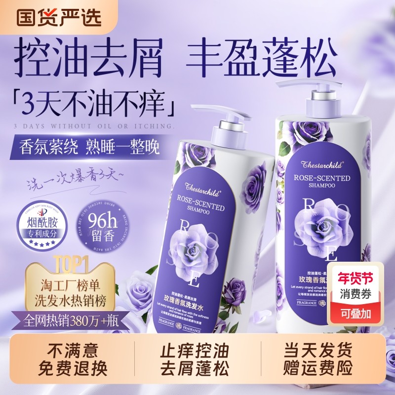 玫瑰洗发水沐浴露乳液套装男女士去屑止痒控油保湿持久蓬松留香