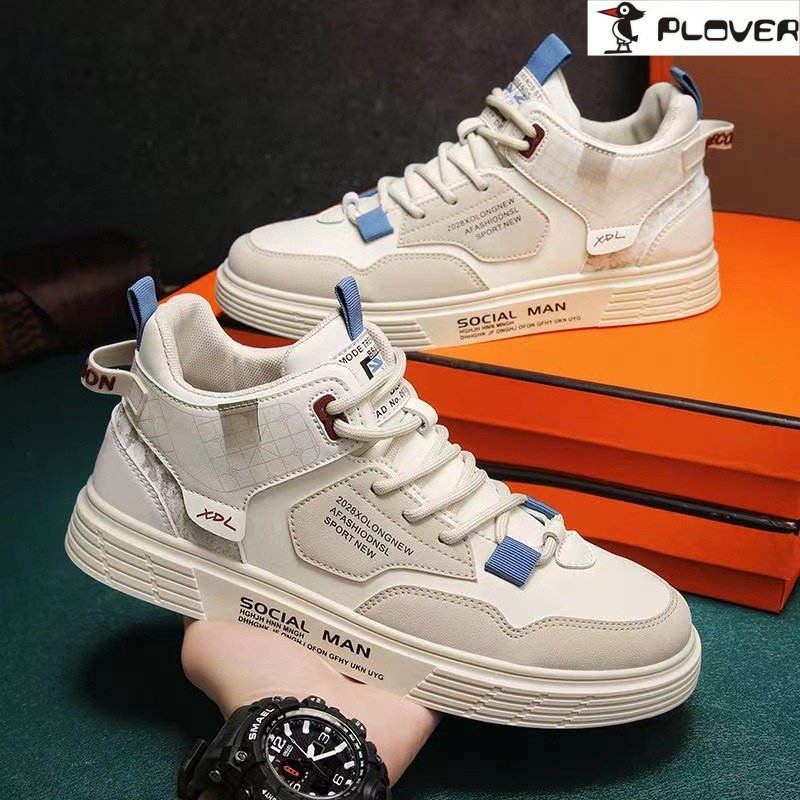啄木鸟新款高帮鞋男士平底板鞋潮流百搭学生休闲鞋时尚休闲轻便