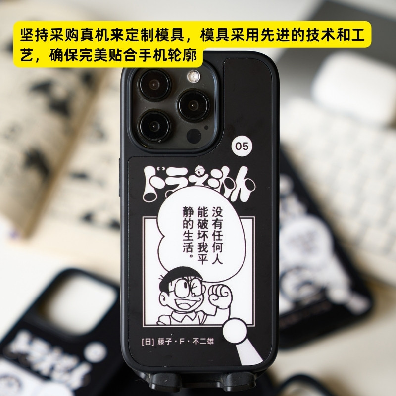 【演我的生活】哆啦A梦自制表情包嘴替款碳纤维黑肤感磨砂手机壳可爱IMDiPhone16ProM苹果15华为p70mate60