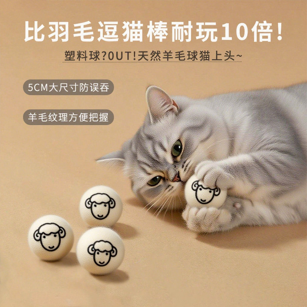 猫咪玩具羊毛绒球静音无声自嗨啃咬洁齿幼猫磨牙逗猫互动猫羊毛球