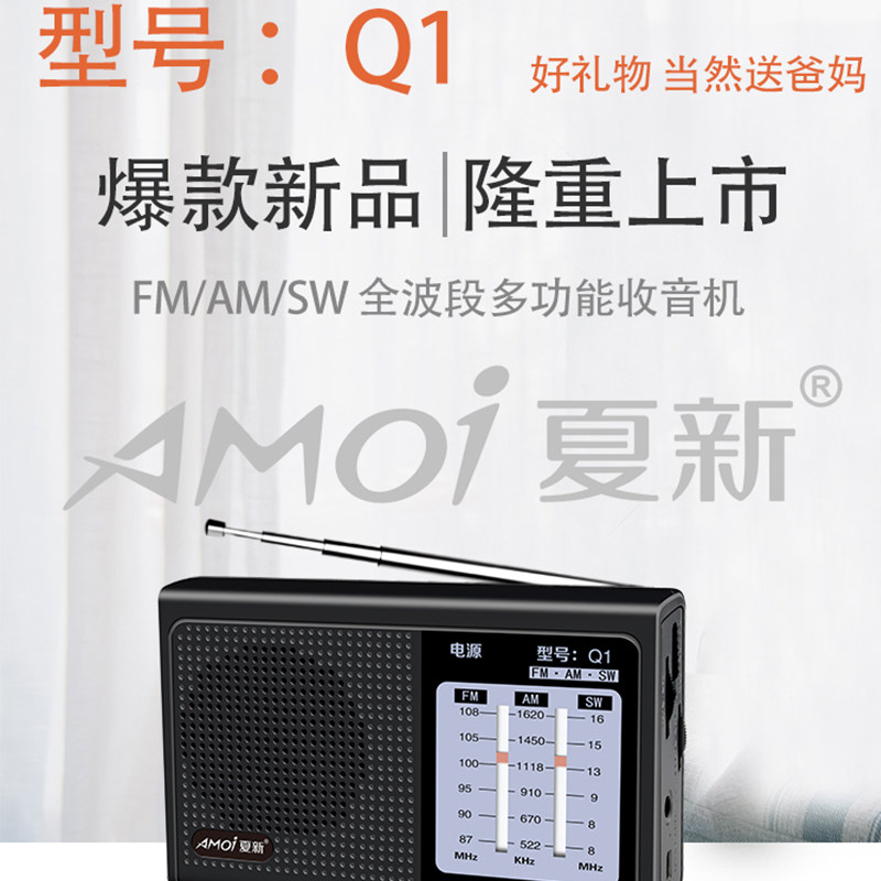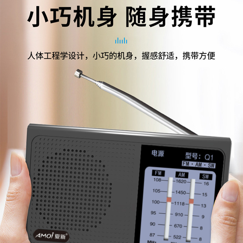 Amoi/夏新 Q1可充电全波段便携式手动选台调频中波广播老人收音机