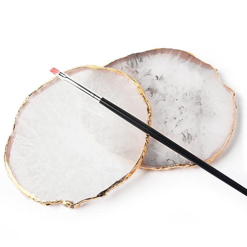 油画棒水晶调色盘超软蜡笔调色板水彩调色树脂玛瑙金色圆边裂纹装饰品油画棒 彩绘大理石DIY