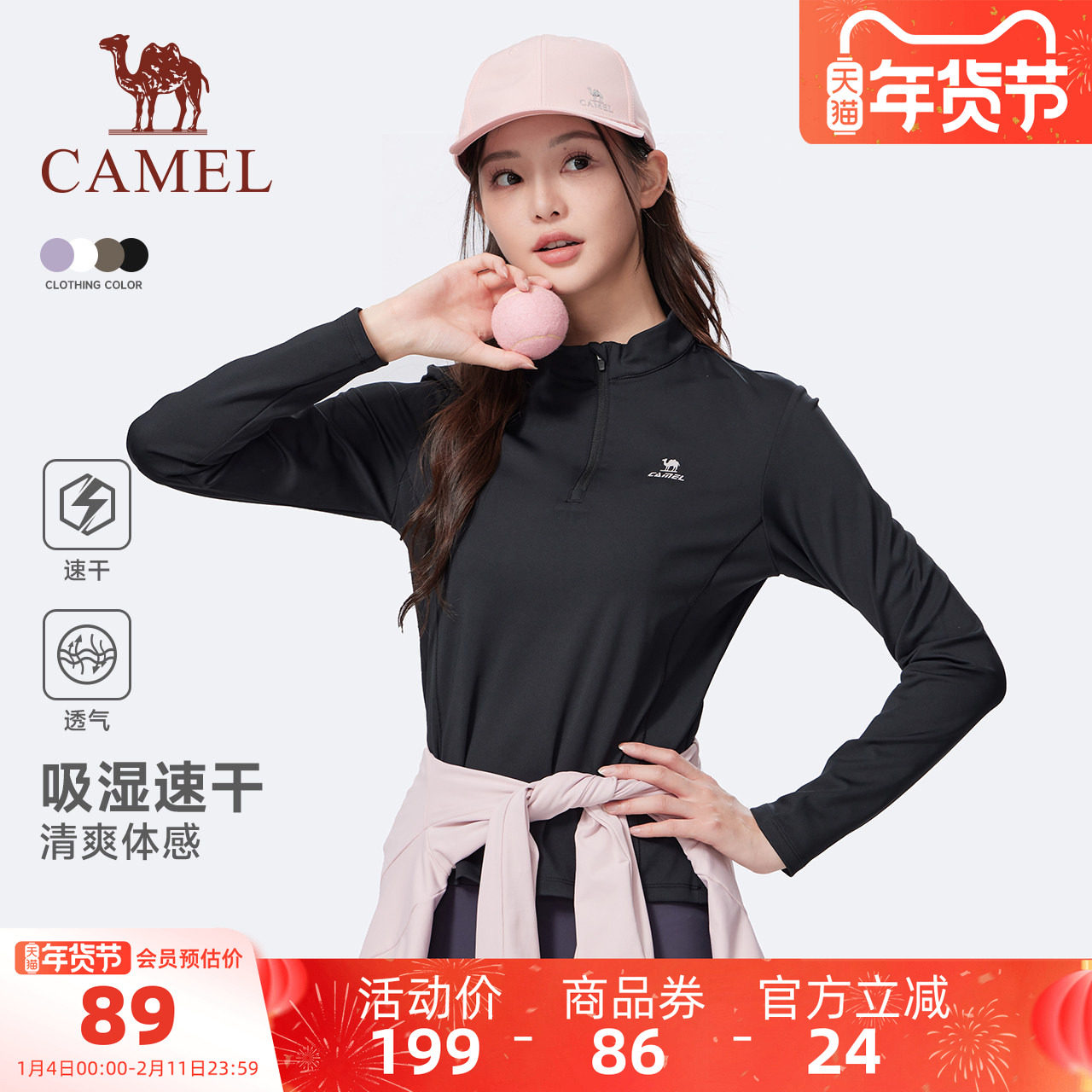 骆驼运动速干衣女2025秋季新款立领长袖T恤训练服跑步健身上衣男