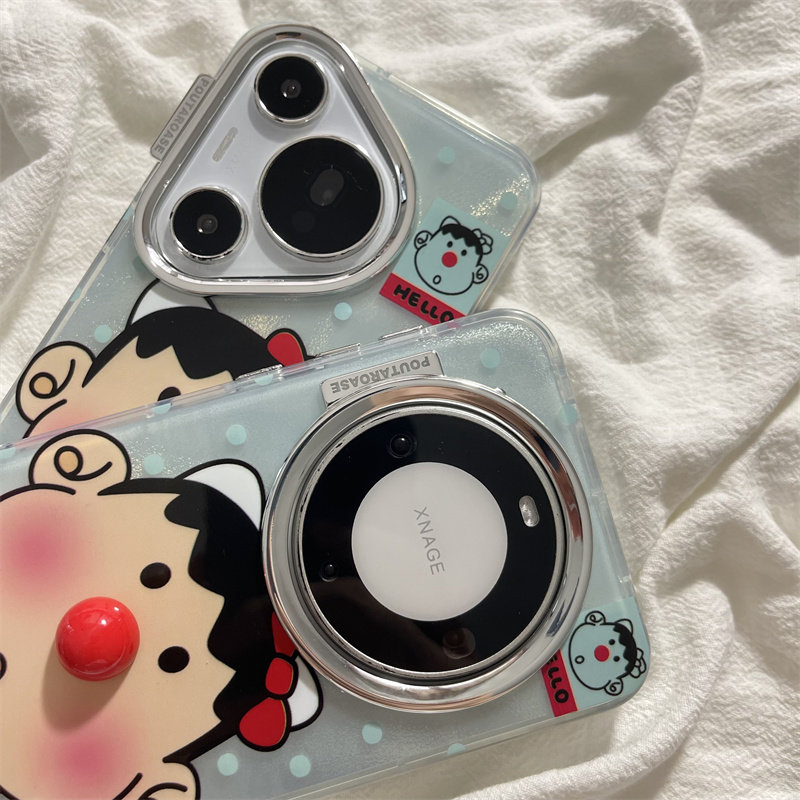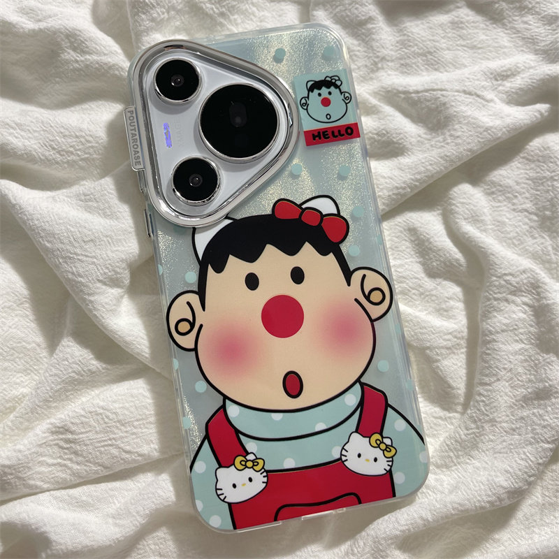 可爱卡通蝴蝶结背带裤胖虎适用华为mate60pro+手机壳pura70pro电镀镜框mate40/50pro保护套70ultran女荣耀200