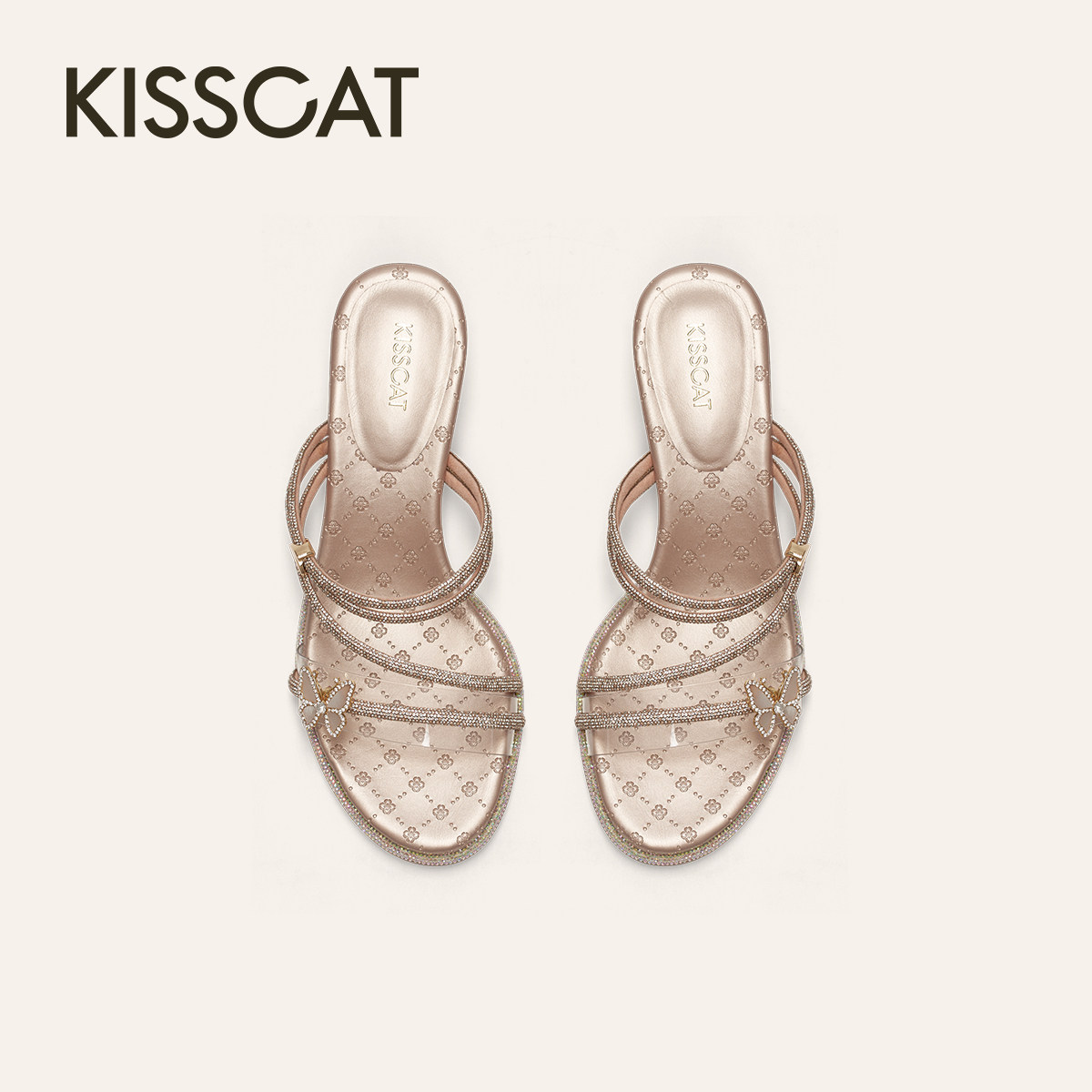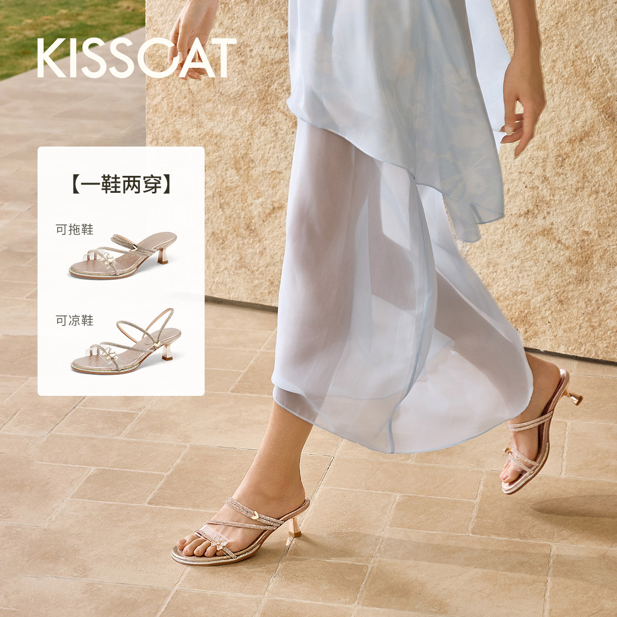 KISSCAT接吻猫[夏日海边]仙女凉鞋夏季优雅凉拖法式两穿高跟鞋女