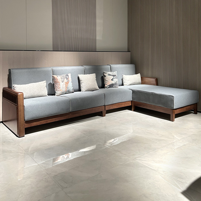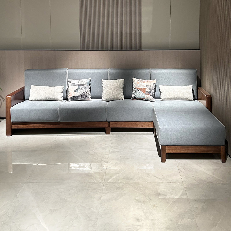 全实木沙发现代简约客厅家具胡桃木转角组合木质小户型两三人直排