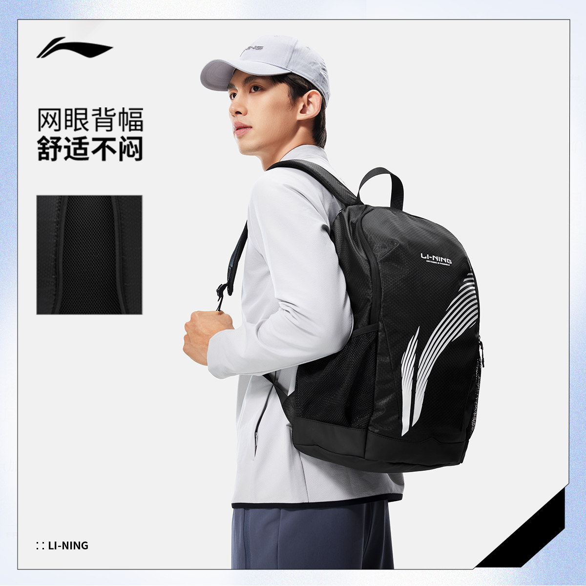 李宁双肩包男士2026新款大学生旅行背包轻便通勤大容量运动书包女