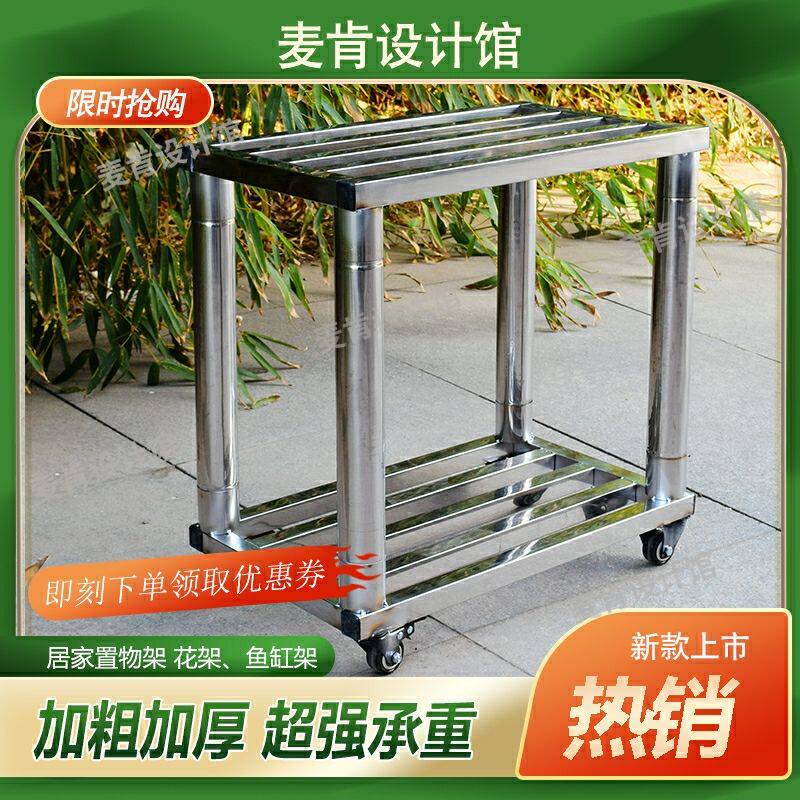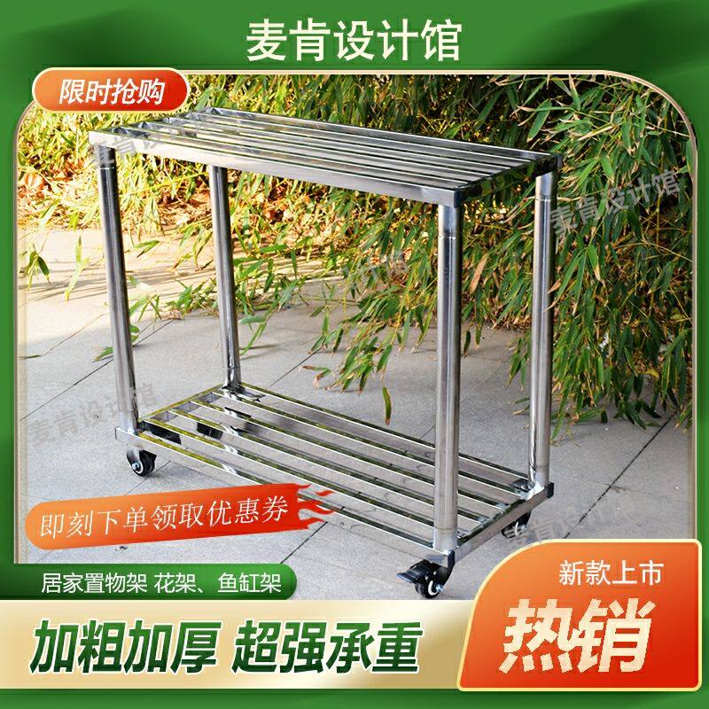 cc超强承重不锈钢置物架花架子小推车带轮移动鱼缸架底座庭院盆景