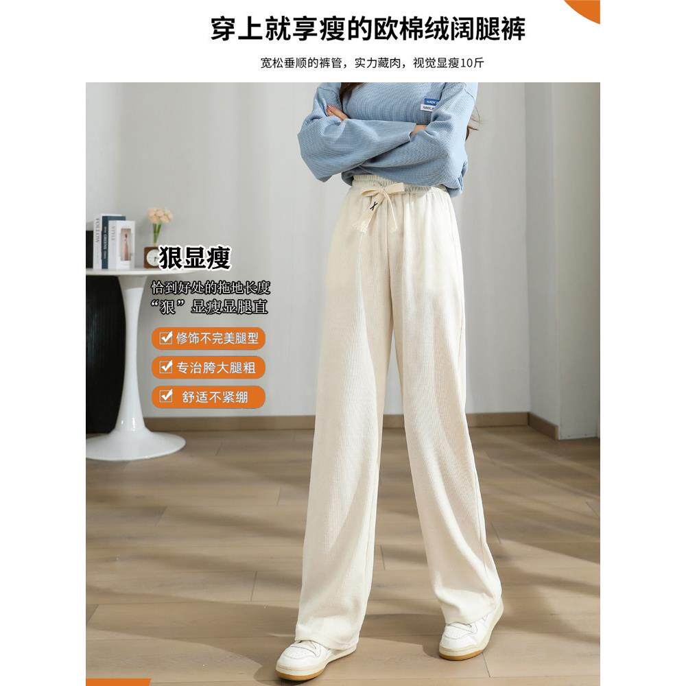 胖mm冬季活力宽松棉裤木子理想大码女松紧腰夹棉保暖阔腿直筒裤子