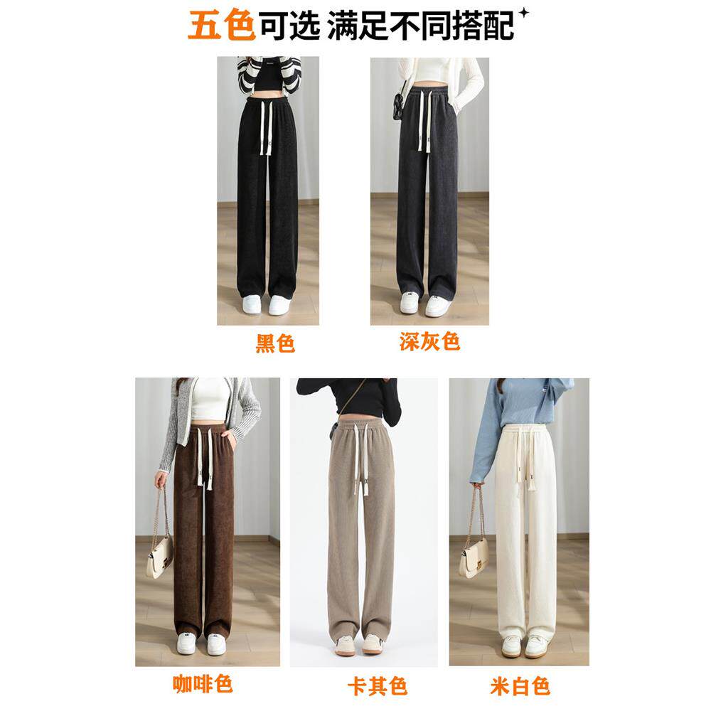 胖mm冬季显瘦毛呢裤木子理想大码女装舒适宽高松紧腰抽绳休闲裤子