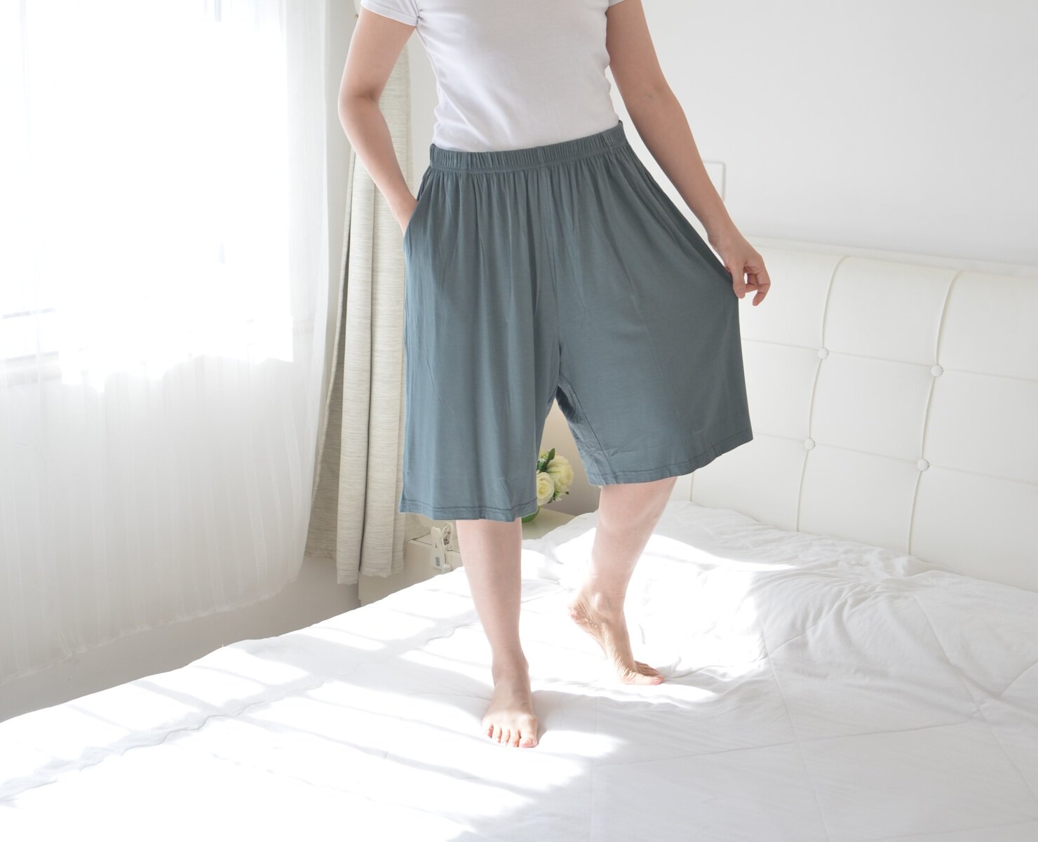 300斤加肥加大码莫代尔家居短裤女夏季宽松休闲胖MM五分裤可外穿