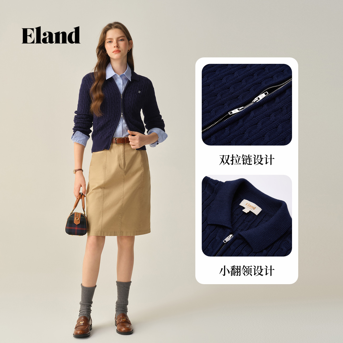 【100%棉】Eland衣恋毛针织衫女拉链开衫休闲毛衣冬季新款