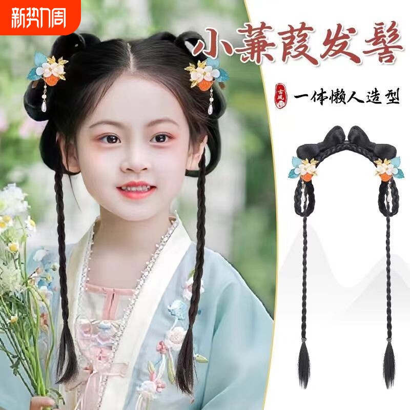 儿童头饰发簪古风唐装配饰女童假发辫子发箍表演拍照盘发造型发型