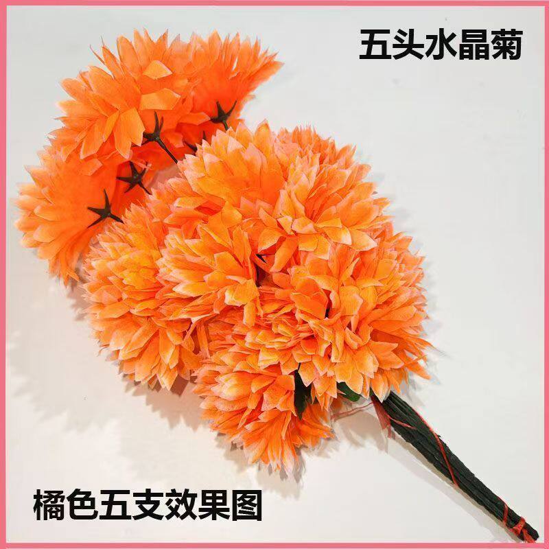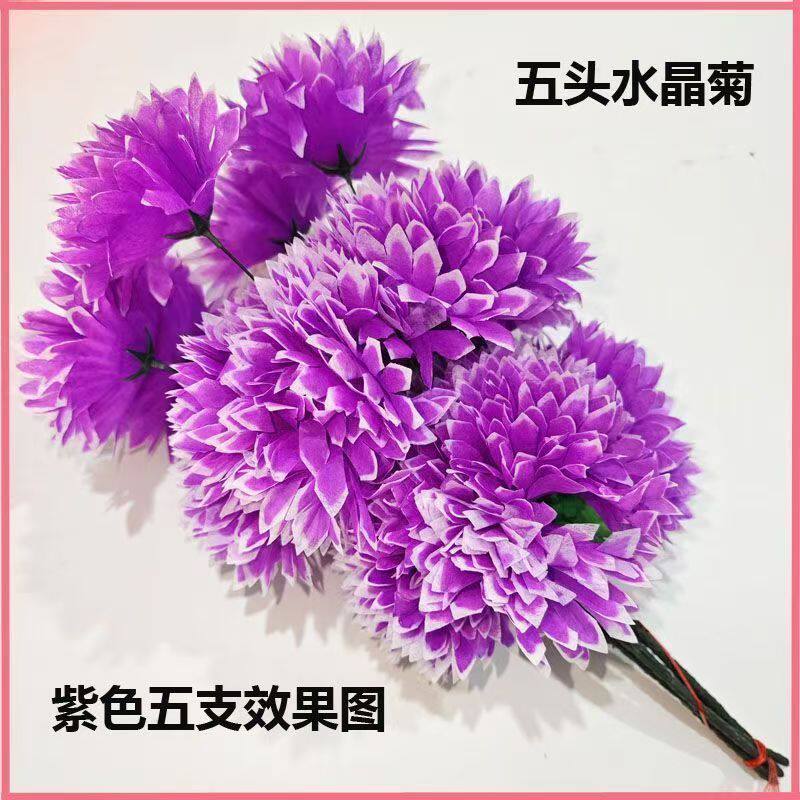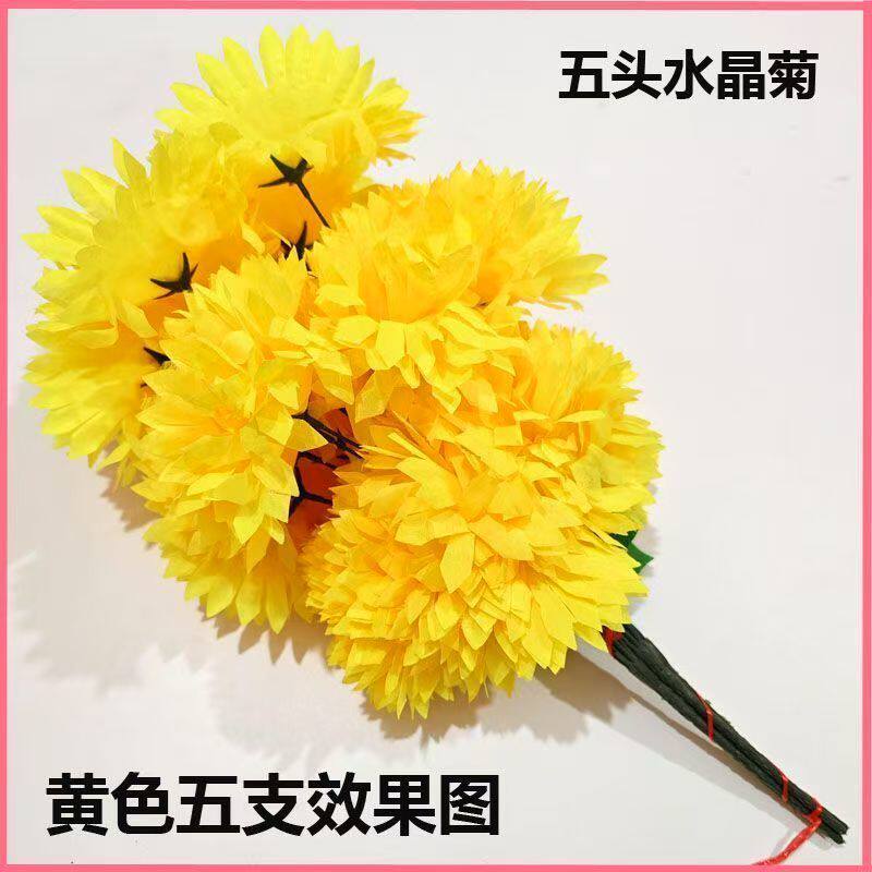 仿真花批发五头水晶假花清仓柜台摆件绢花高档清明纸祭用品塑料花