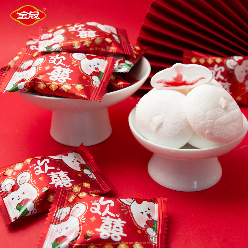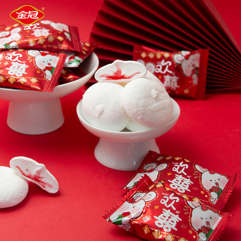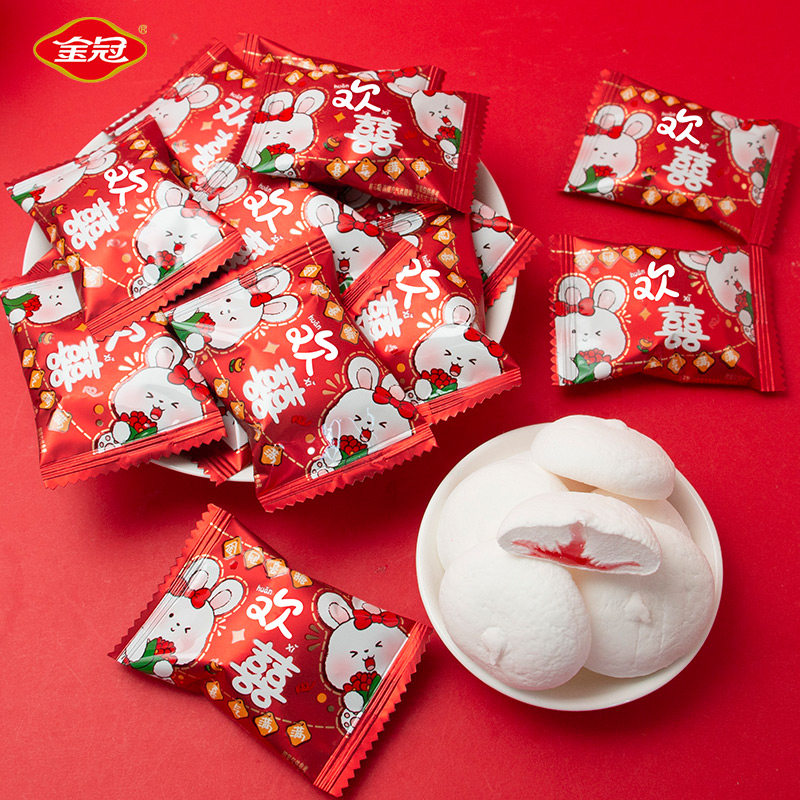 金冠欢喜棉花糖500g袋装夹心糖结婚喜糖婚糖果伴手礼回礼年货零食
