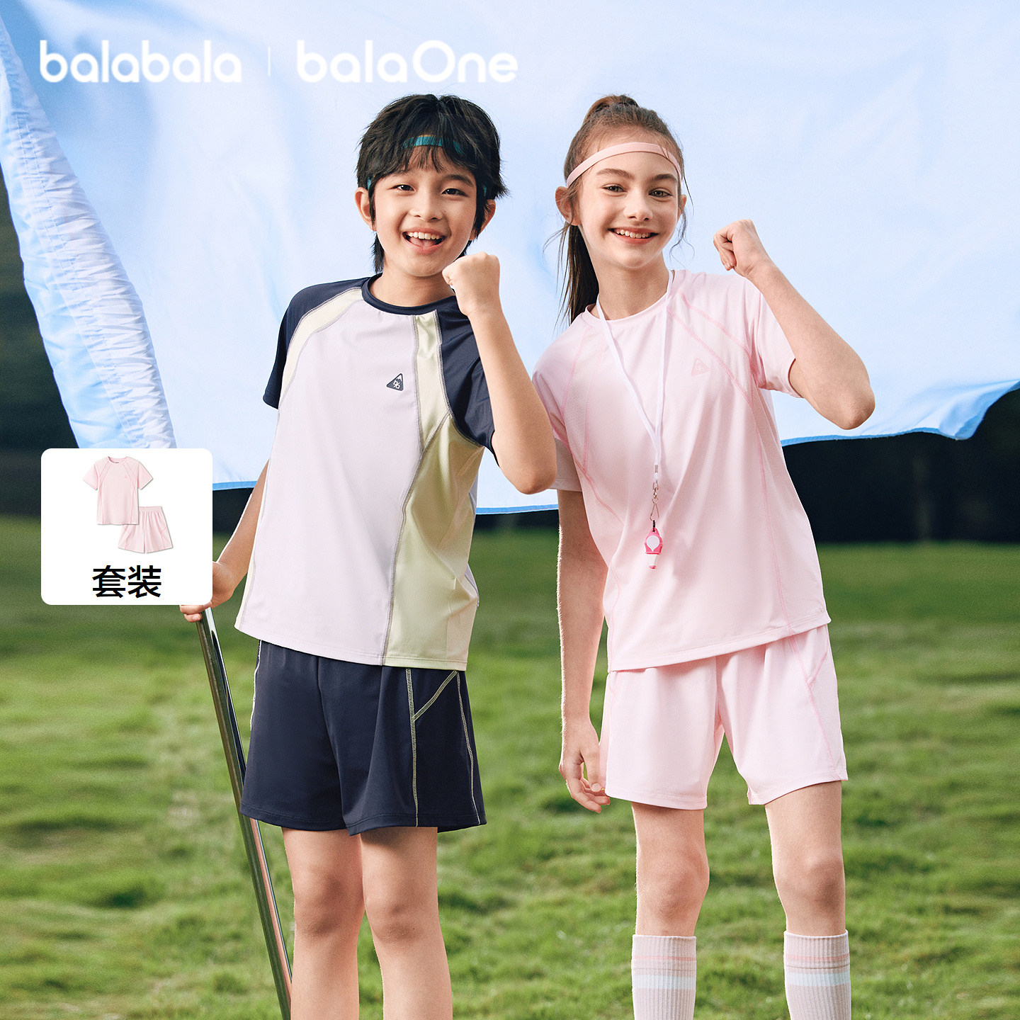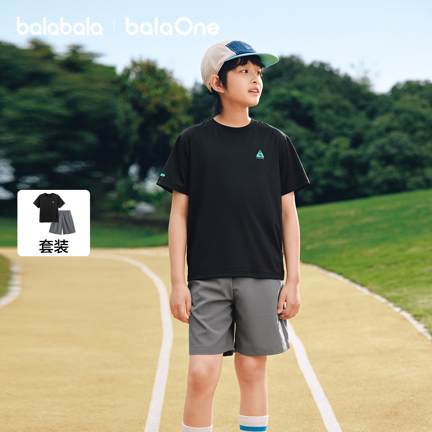 巴拉巴拉男童短袖套装儿童中大童两件套2026新款夏装速干舒适上衣