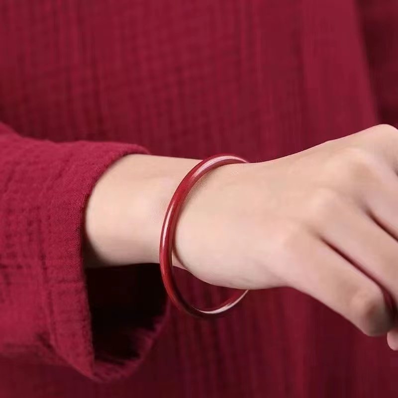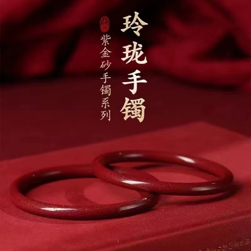 520礼物纯度紫金砂朱砂手镯正品女士叮当镯本命年素圈手串原矿